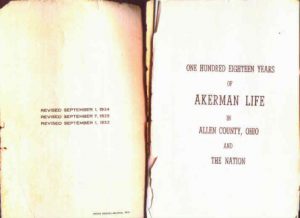 I have been researching Ackerman genealogy for close to 20 years as well as some of you. When I started out I ran into brick walls. This hasn’t changed except the brick walls seemed to move. I am on Ancestry, My Heritage and Family Search as well as several other pages. Needless to say I do spend a lot of time doing research. One goal I have is to try and put it all together and create our story. I am basing our story off of our One Hundred Eighteen Years of Akerman Life book. Some of you have this book but many others do not. Years ago I started to create a new Akerman Life book, I got busy with other things so that took a back seat. So maybe we can get something together on a New Ackerman Life book. This website is the beginning stages of said book. At least maybe we can have it here.
